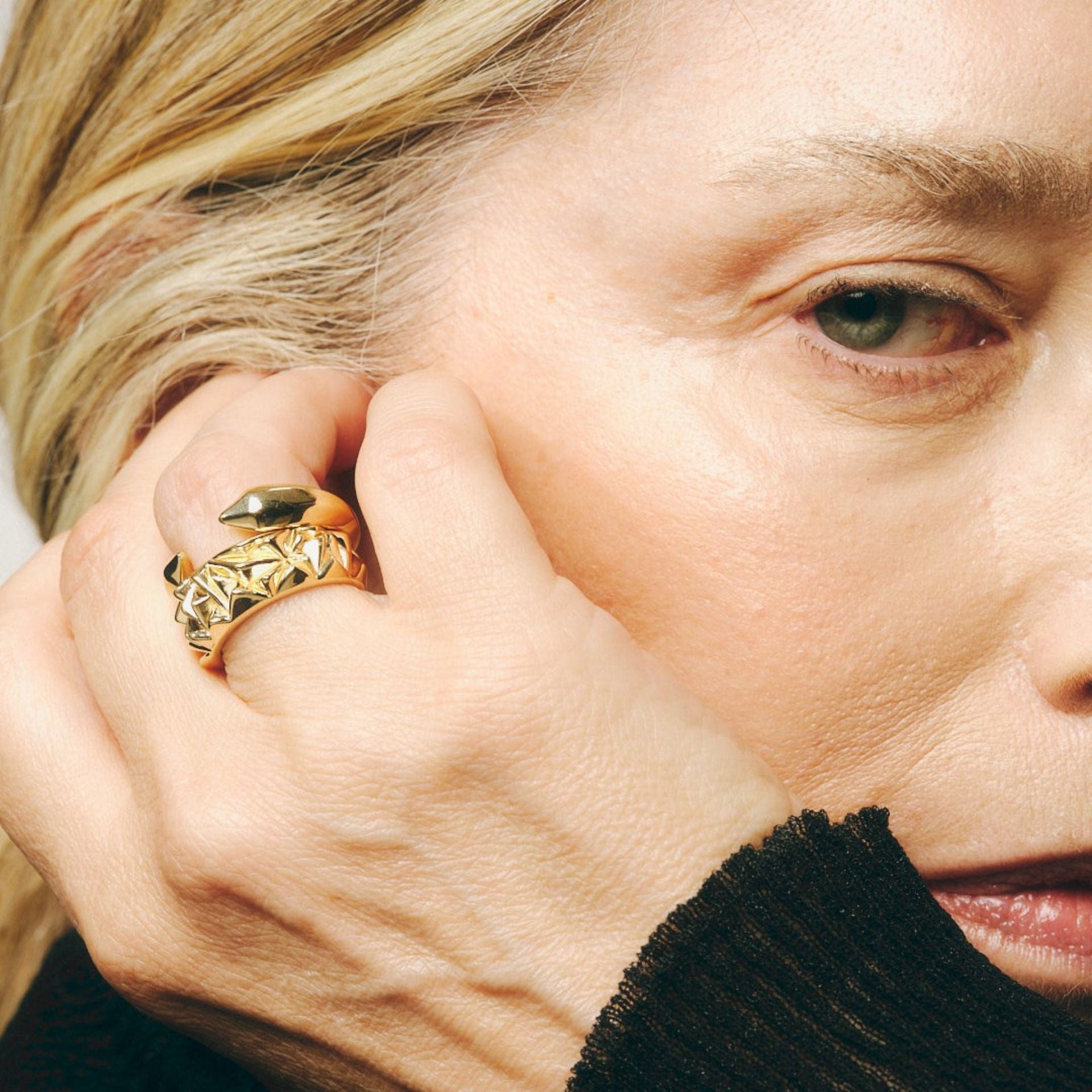 This Sculptural Ring in 925 silver with a coating of Palladium and Rhodium is defined by a hand-carved, faceted texture inspired by the raw strength of primal matter. A living surface that reflects light in unexpected ways, as if in constant transformation. A tribute to the very essence of sculpture.