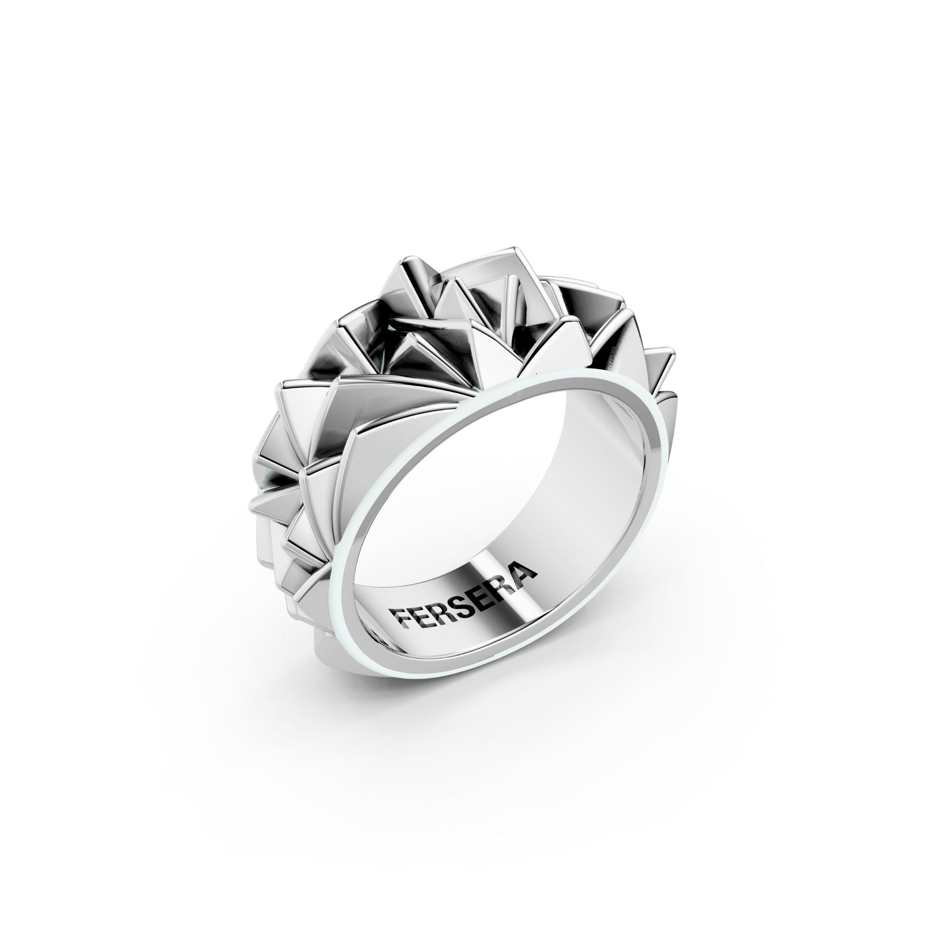 This Sculptural Ring in 925 silver with a coating of Palladium and Rhodium is defined by a hand-carved, faceted texture inspired by the raw strength of primal matter. A living surface that reflects light in unexpected ways, as if in constant transformation. A tribute to the very essence of sculpture.
